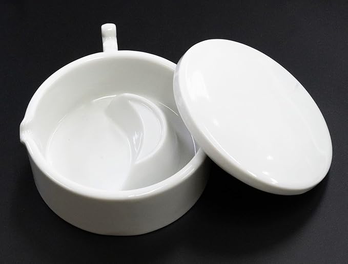 【墨池 白磁 小 筆置き付き】 墨汁を入れる墨池です。筆洗、筆置きとしても使えます。伝統的工芸品の美濃焼です。墨池、筆洗、筆置、平皿(上蓋)として書道・日本画・水墨画・絵手紙に使えます。磁器製なので墨の汚れがきれいに取れます。筆ならしが付いていて穂先を簡単に整えることができます。 【商品詳細】 ・材質 磁器 ・使用用途 墨液を入れる/筆洗(墨をおとす) ・商品サイズ 直径108 40mm(筆置き部を除く) ・重量520g ・産地 岐阜県 稀に貫入(釉薬に亀裂が生じる現象。ヒビ割れではありません)がありますが、不良品ではありません。使用に問題ありません。