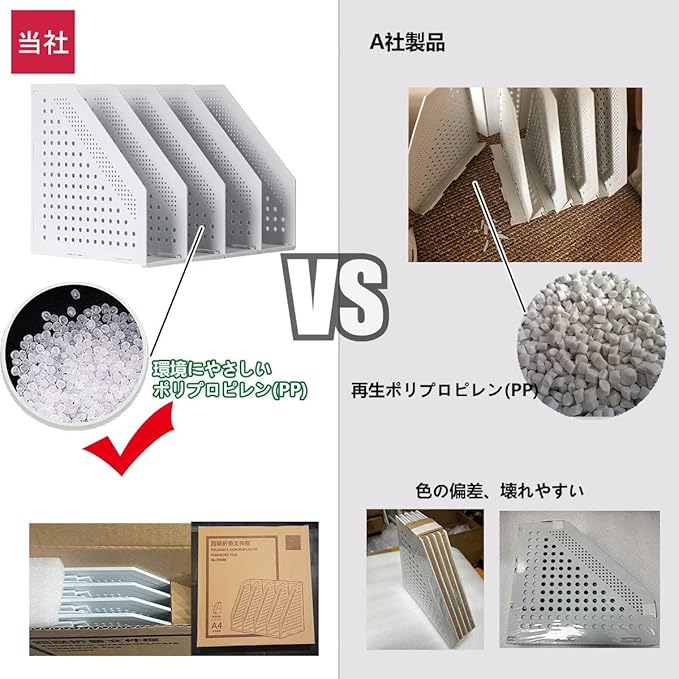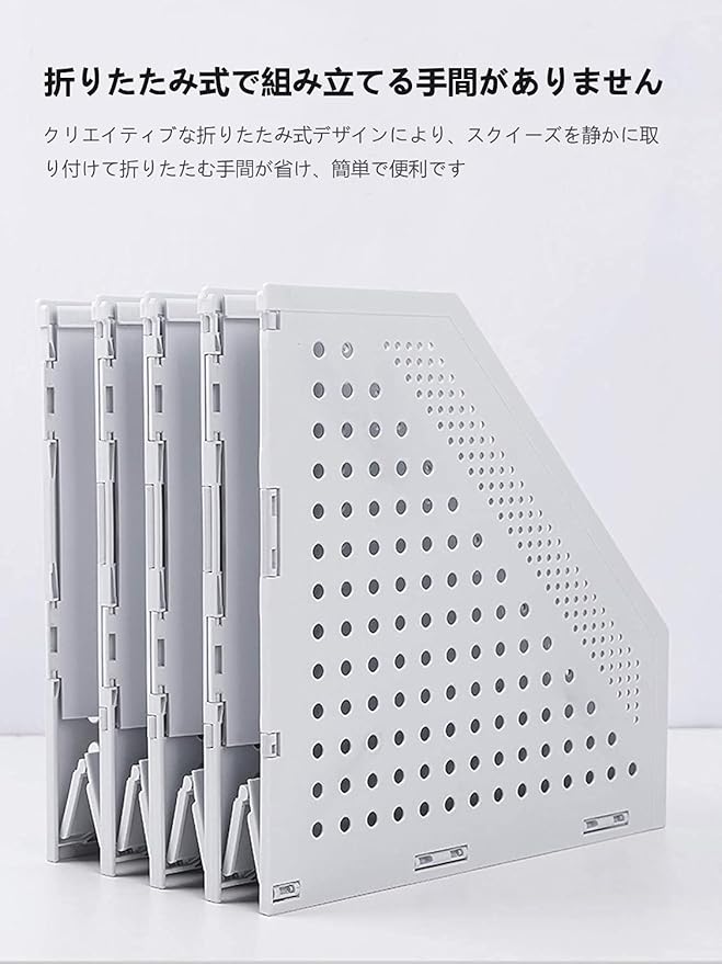 【正规品】 デスク上置棚 A4ファイルボックス 折りたたみ式–この柔軟なマガジンホルダーは省スペースで、4つのコンパートメントを自由に使用できます。