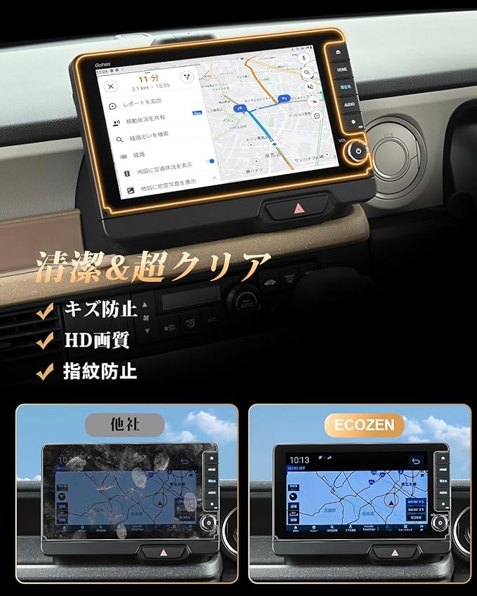 【97%の透過率、超高精細で裸画面のような滑らかな操作感】 はわずか0.25mmの超薄型設計されたECOZENの N-BOX JF5/JF6 専用 ナビ 保護フィルム、貼り付けても存在感ゼロ。97%の透過率により、ナビ画面の鮮やかさをそのままに再現します。細かな情報までもクリアに表示され、運転中の視認性を向上させ、視界のぼやけによる事故を防ぎます。