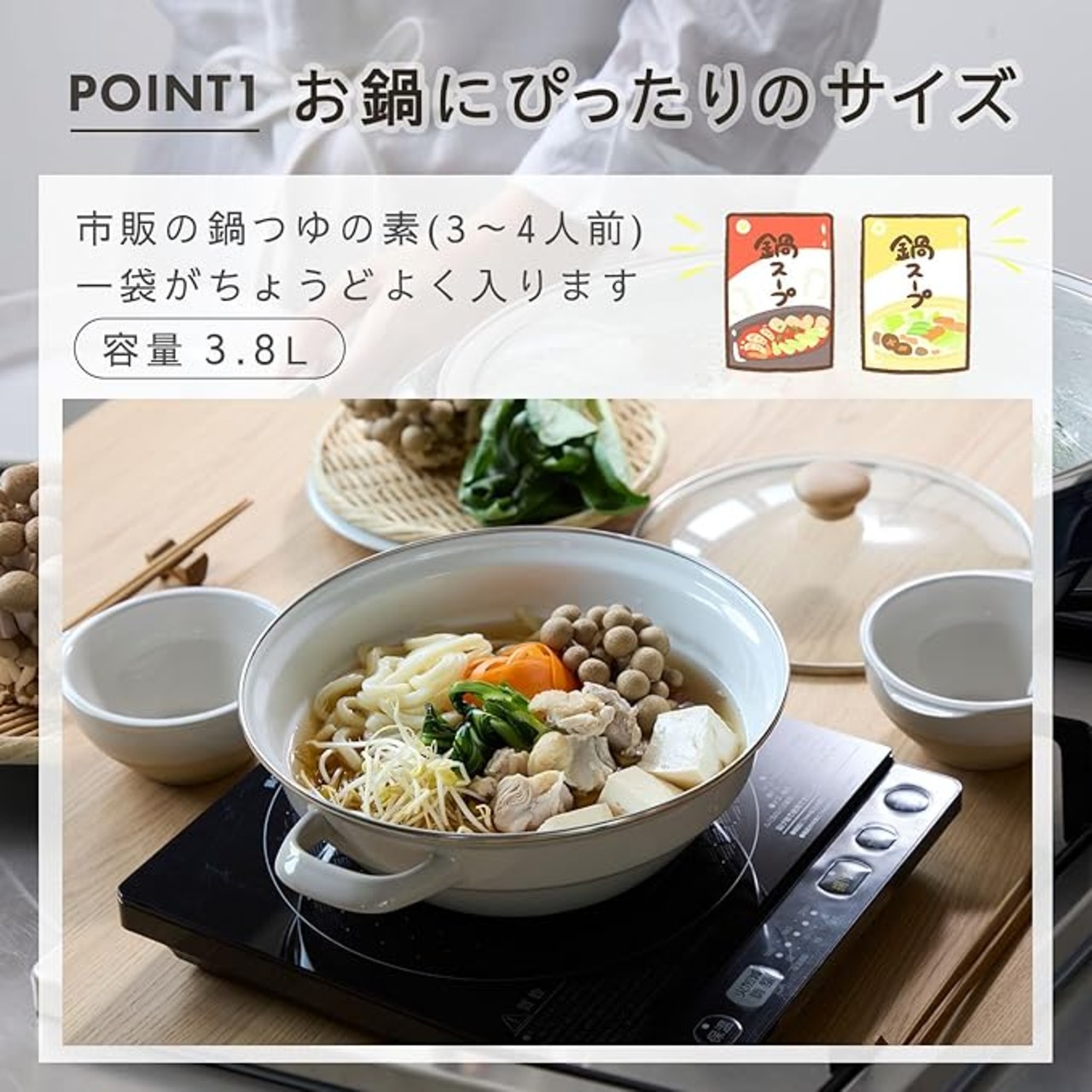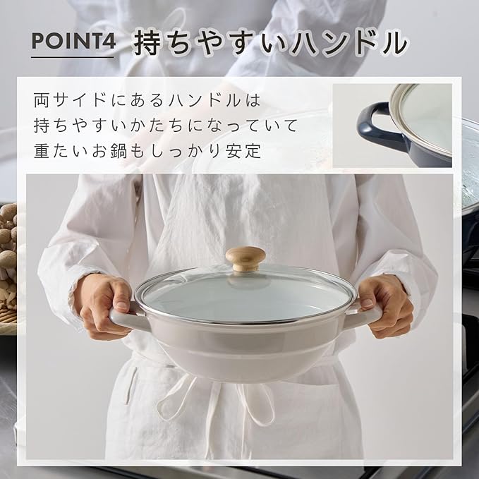 ・琺瑯製で熱効率が高く、保温性も高いため卓上鍋料理にぴったり