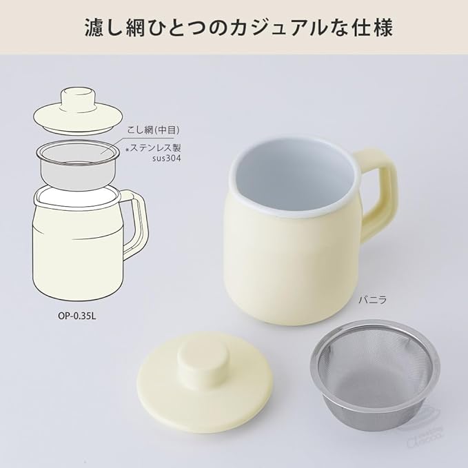 材質:本体 ほうろう用鋼板、こし網 ステンレス(sus304)