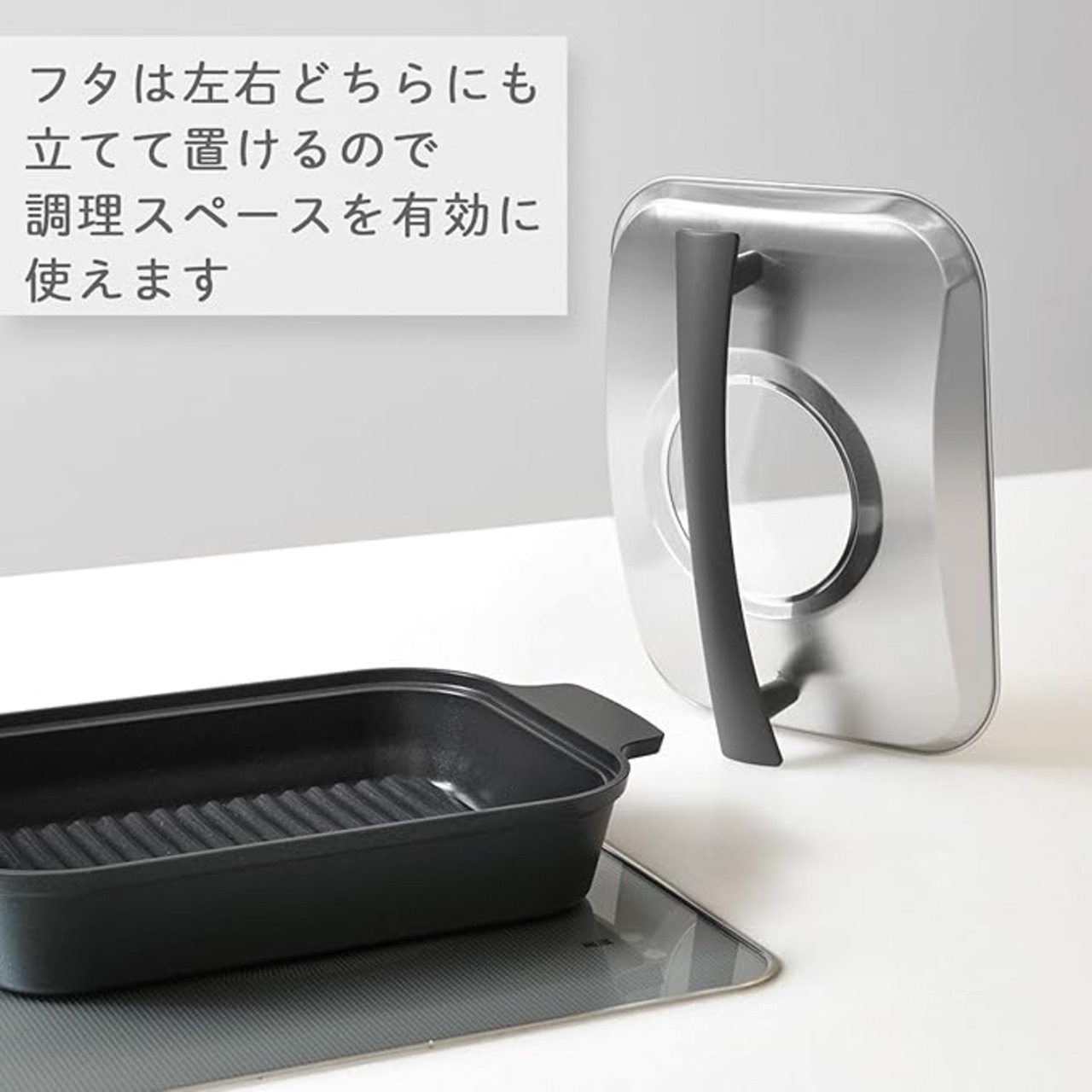 ●蒸して焼ける魚焼き、お肉もヘルシーに焼き上げる。●「蒸す 焼く」でヘルシーに時短で焼き上げる魚焼きロースター。●本体のウォーターポケットに水を入れて、高温の蒸気で食材を包み込み、ふっくらとやわらかい食感に仕上がります。●魚だけでなく、お肉、野菜、お餅などさまざまな食材を調理できます。●IH200V・100V、ガスなど様々な熱源で使用できます。●蓋は左右どちらでも立てて置けるので調理スペースを有効に使えます。●焦げや傷がつきにくくお手入れしやすいフッ素コーティングを施しました。●IHやガスなどの様々な熱源に対応 ※海外製IHクッキングヒーターでは使用できない機種もあります。