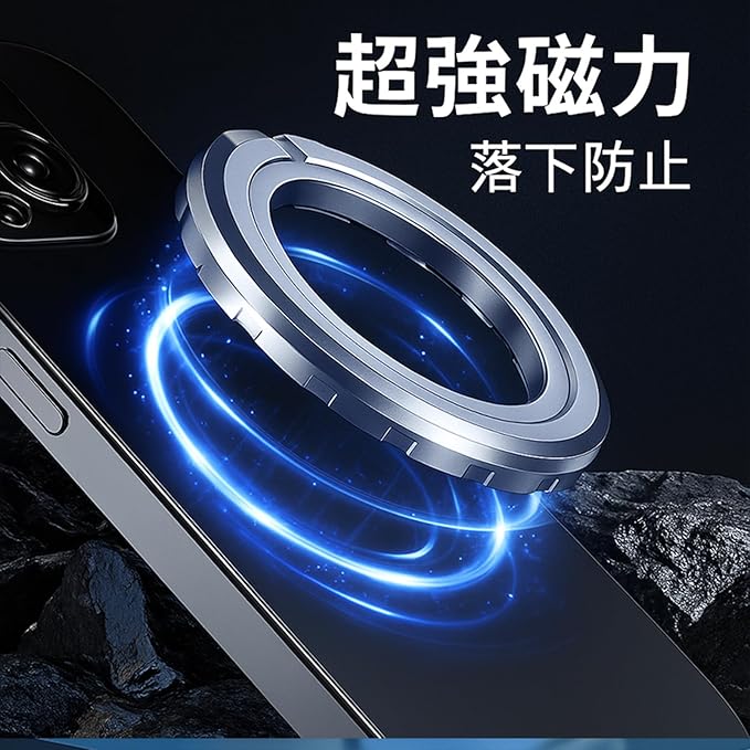 【360 回転&180 折りたたみ】マグネット式スマホリングスタンド強力マグネット内蔵で、安定感抜群!吸着力がさらに強化されており、落下の心配なし。セットに付属の引磁リングを使えば、MagSafe非対応機種でも簡単に取り付け可能。