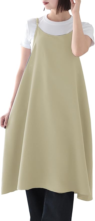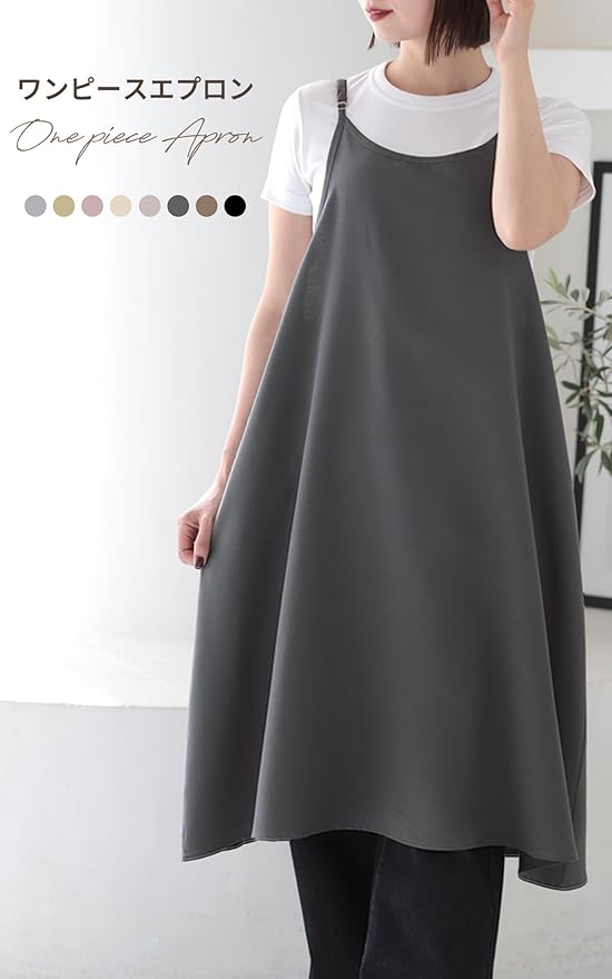 【サイズ感とポケット機能】154〜161cmの身長比較あり、ゆったりとしたAラインシルエットで体型カバー、便利なポケット付きで実用性も抑えた設計。