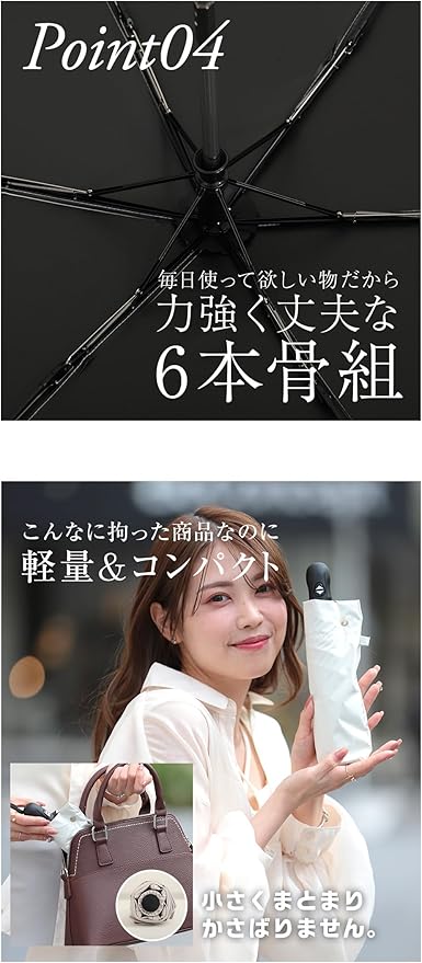 ☂【片手でワンタッチ自動開閉おりたたみ傘】 ワンタッチで自動開閉ができる日傘は、片手でも使え、とっさに傘を出して開ける際にはストレスがありません。車の乗り降りの際や、片手しかあいて無い時には大変便利です。普通な通勤用カバンや車に常備しておけば、緊急天候にも対応できます。