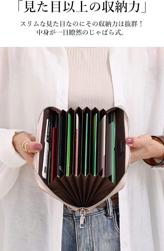 ✅【見た目以上の収納力】通帳ポケットが8枚、カードポケットが12枚、お札などを入れるポケットが2つとこのサイズでこの収納力はクラス最高です。