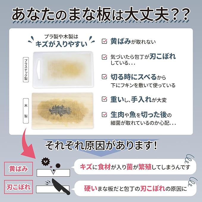 包丁が沈んでもキズに強く、やわらかな刃当たりで刃こぼれしにくい