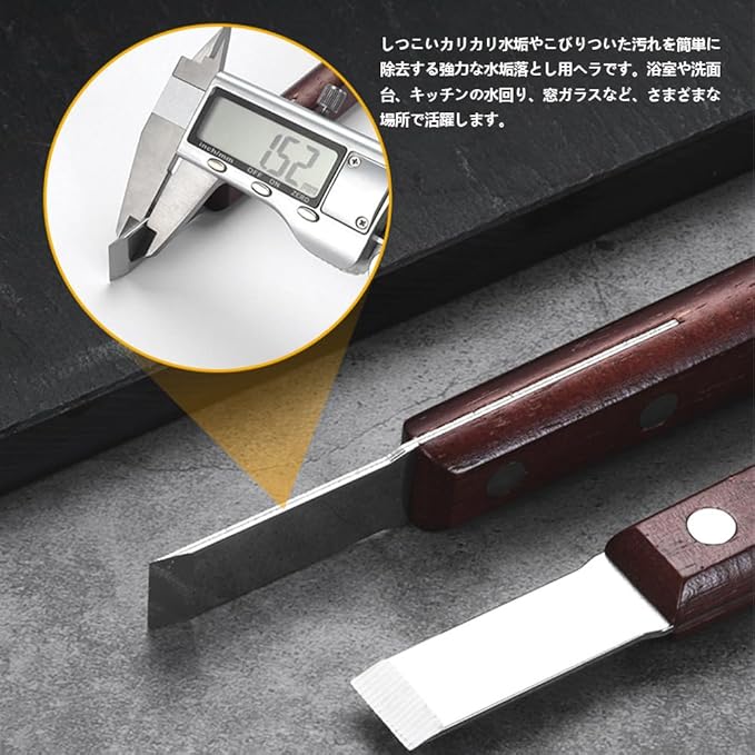 【✨頑固な水垢をカリカリこすり落とす!✨】 しつこいカリカリ水垢やこびりついた汚れを簡単に除去する強力な水垢落とし用ヘラです。浴室や洗面台、キッチンの水回り、窓ガラスなど、さまざまな場所で活躍します。軽量で使いやすいデザインで、毎日の掃除をよりスムーズにしてくれる頼れるアイテムです!