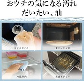 ●界面活性剤不使用なので、洗剤を使いたくない電子レンジや冷蔵庫内、車内のお掃除にも適しています。