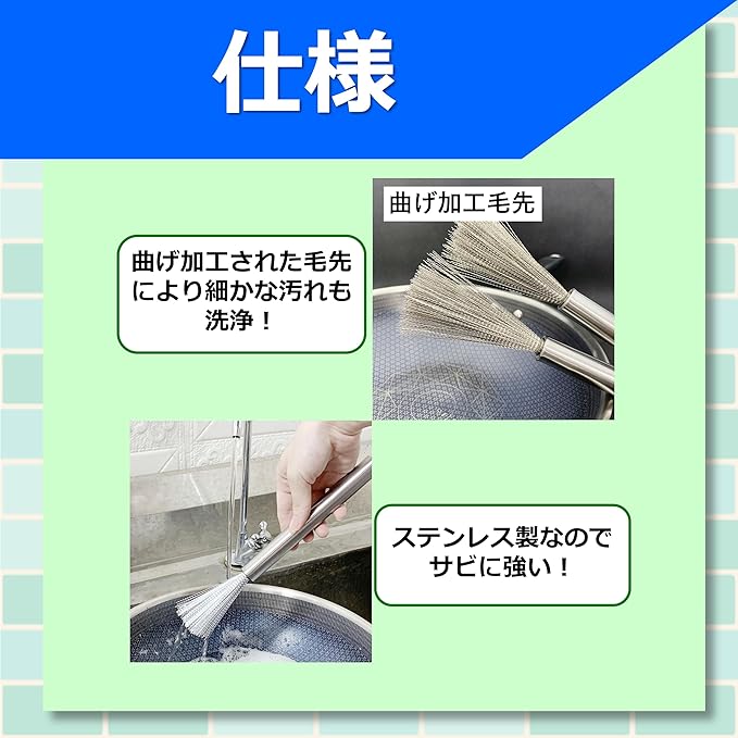【 高品質ステンレスで長持ち 】 ステンレス素材を使用したこのささらは、錆びにくく、耐久性も抜群です。毎日の使用に耐える高品質設計なので、長期的な使用でも性能が落ちません。頑丈なつくりでプロ仕様の仕上がりを実感できます。