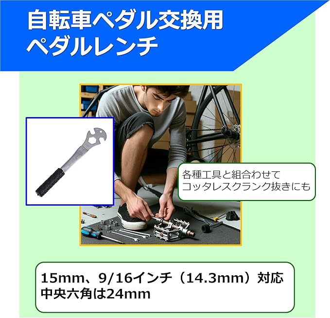 【✅ 自転車ペダル交換に最適なペダルレンチ】 自転車のペダル取り外し・取り付け作業に特化した高耐久ツール。初心者からプロまで、日常のメンテナンスやカスタム作業をスムーズにサポートします。