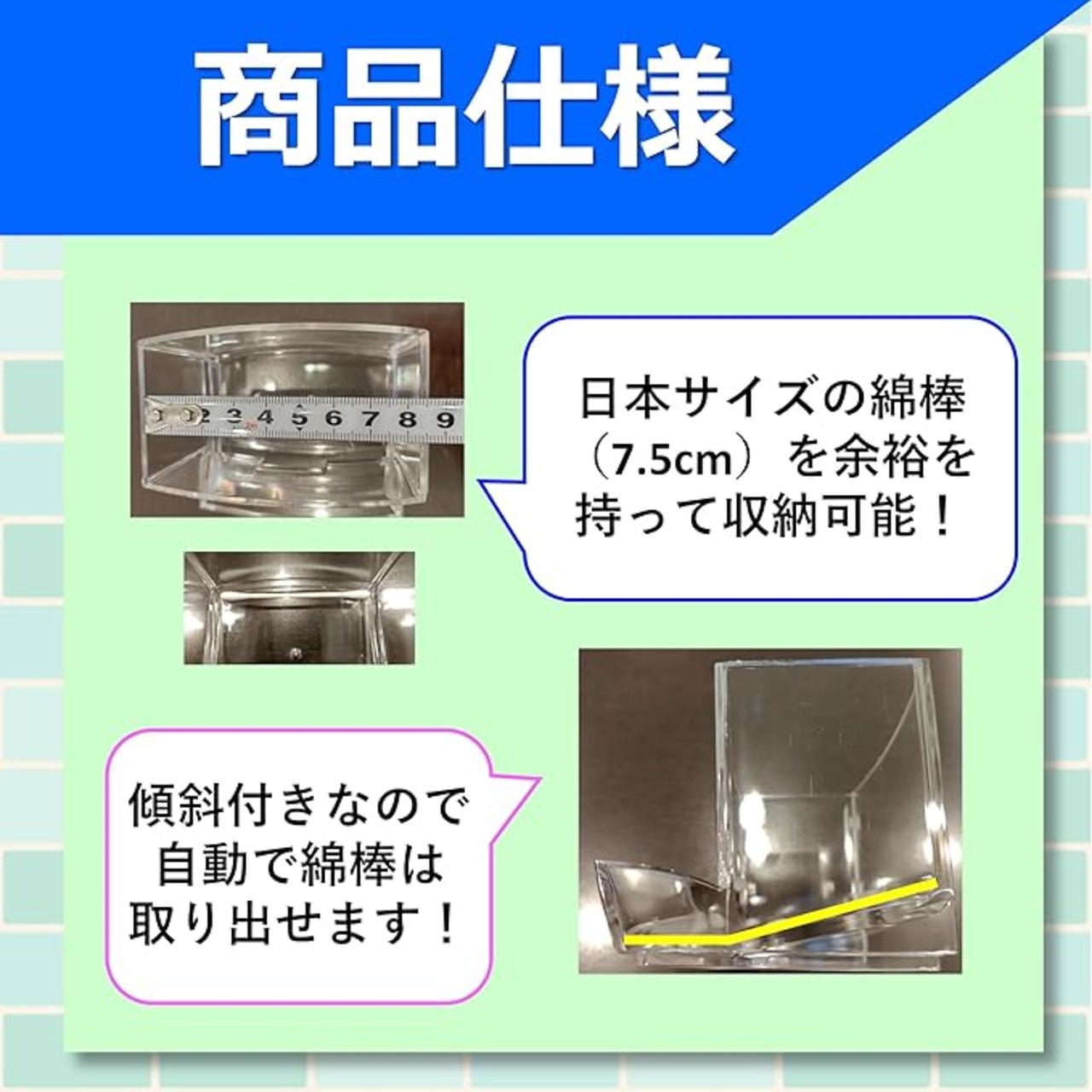 【✨日本サイズ綿棒にぴったりフィット✨】高級感ある透明デザインの「自動開閉 綿棒ケース」は、標準的な日本サイズの綿棒に対応した設計で、無駄なくスッキリ収納できます。L字口構造で中身が取り出しやすく、綿棒やコットン、髪ゴムなどの小物収納に最適。コスメ収納としても活躍する、おしゃれで実用的な高級仕様の小物入れです。 【 片手で開くフタ付き 】片手で開くフタを採用。メイク中やケア中でも片手でラクに使用できます。綿棒・コットンを使うたびに快適さを実感できる、機能性抜群の綿棒入れです。日本サイズ綿棒をしっかり収納可能なので、サイズ選びに悩む心配もありません。 【 高級感 透明美デザイン 】透明度の高いプラスチック素材で作られたこの綿棒ケースは、見た目も美しく、洗面台やドレッサーに置いてもインテリアの邪魔をしません。高級仕様で長く愛用でき、綿棒や髪ゴム、リップなどの小物をスタイリッシュに収納できます。自宅用にもプレゼントにもぴったりの逸品です。 【 L字型開口で取り出しやすさ抜群 】中身の取り出し口がL字型になっており、綿棒やコットンがサッと取り出せてストレスフリー。開けたときに中身が飛び出しにくい構造で、収納力だけでなく使い勝手も抜群です。忙しい朝のメイクやスキンケアにぴったりのコスメ収納ケースです。 【 毎日の暮らしをもっと快適に 】髪ゴム・コットン・綿棒・ピンなど、日常使いの小物をすっきり整理整頓。透明ボディだから中身が見やすく、必要なものをすぐに取り出せます。コンパクトながら収納力が高く、省スペースでも活躍。日本サイズ綿棒対応の実用的な収納アイテムとして、家庭でもオフィスでも重宝します。
