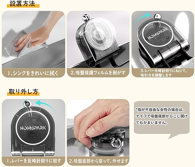 【簡単取り外し】:吸盤式なので、必要に応じて簡単に取り外して洗浄できます。衛生的に保つための手間が少なく、シンクに跡を残さず、賃貸の方は最適、引っ越しも持ち運びます。
