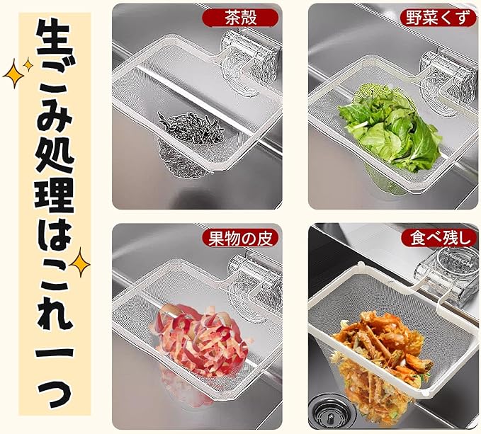 【多用途で便利】:この水切りラックはスープ、食べ残し、お茶殻のろ過はもちろん、うどん、インスタントラーメンなど処理に悩む方にしてはキッチン便利グッズと言えます、シンク排水口にごみを詰まる悩みはなくなる。