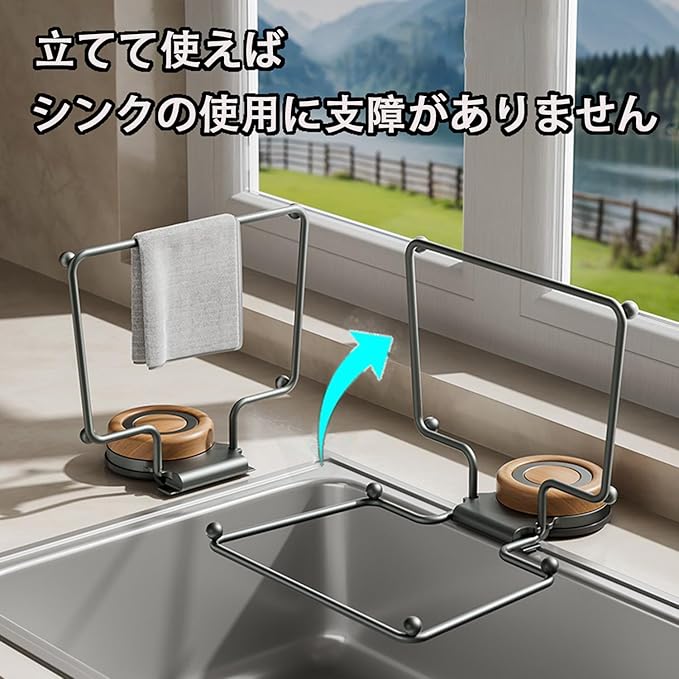 【取り付け簡単】シンクをきれいに拭き取り、吸盤の保護フィルムを剥がした後、取り付けたい位置に押し付けて、つまみを時計回りに回してロックするだけです。 ※本製品は、平らで滑らかな面にのみ対応しています。