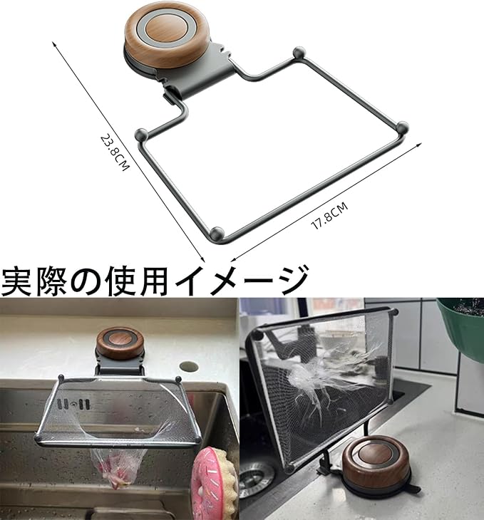 強力吸盤でしっかり固定され、優れた耐荷重性を備えています。設置はとても簡単で、貼り直しても跡が残らず、好きな位置に付け替え可能です。シンクの内側にも設置できるため、スペースを無駄なく活用できます。さらに、使い捨てタイプの水切りネットが50枚付属しており、とても便利です。