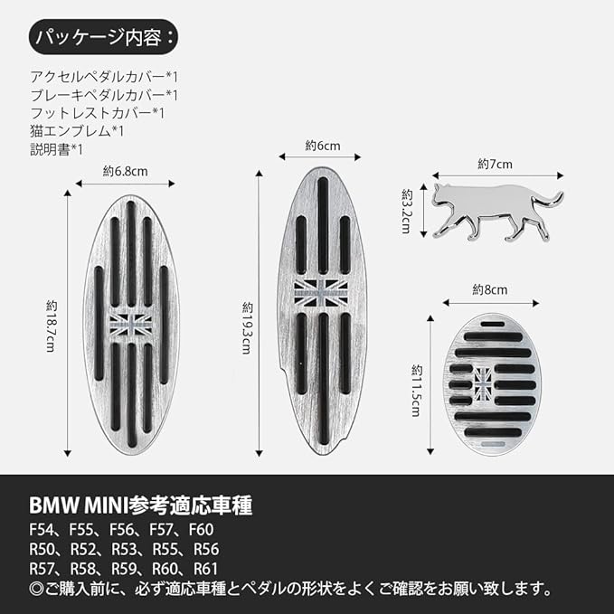 <BMW MINI に最適ペダルカバー>純正なペダルに基づいて設計しています。F54、F55、F56、F57、F60、R50、R52、R53、R55、R56、R57、R58、R59、R60、R61など車種に適しています。ご購入する前に、適応車種及びご愛車のペダルの形状をよくご確認をお願い致します。