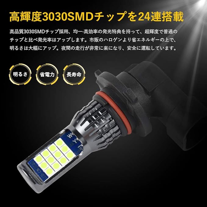 【発光効率に優れ】高品質3030SMDチップ採用、均一 高効率の発光特典を持って、超輝度で普通のチップと比べ発光率はアップします。市販のハロゲンより省エネルギーの上で、明るさは大幅にアップ。夜間の走行が非常に楽になり、安全に運転しています。