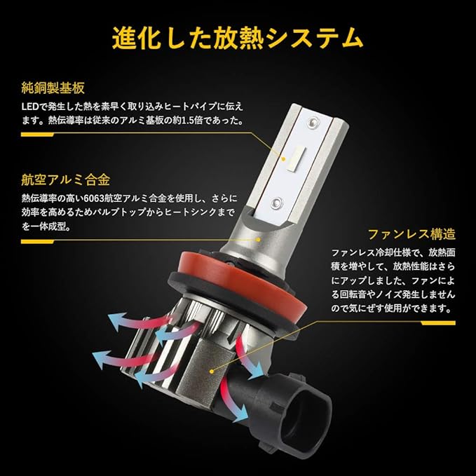 【発光効率に優れ】高品質SEOUL Y19 CSPチップを採用し、より効率のいい発光となりました。ハロゲンバルブの配光特性を更に追及。他車へ幻惑を与えない正確な配光を生み出し、広範囲な配光で路面を確実に照らす高い路面照射精度を実現しています。市販のハロゲンより省エネルギーの上で、明るさは大幅にアップ。