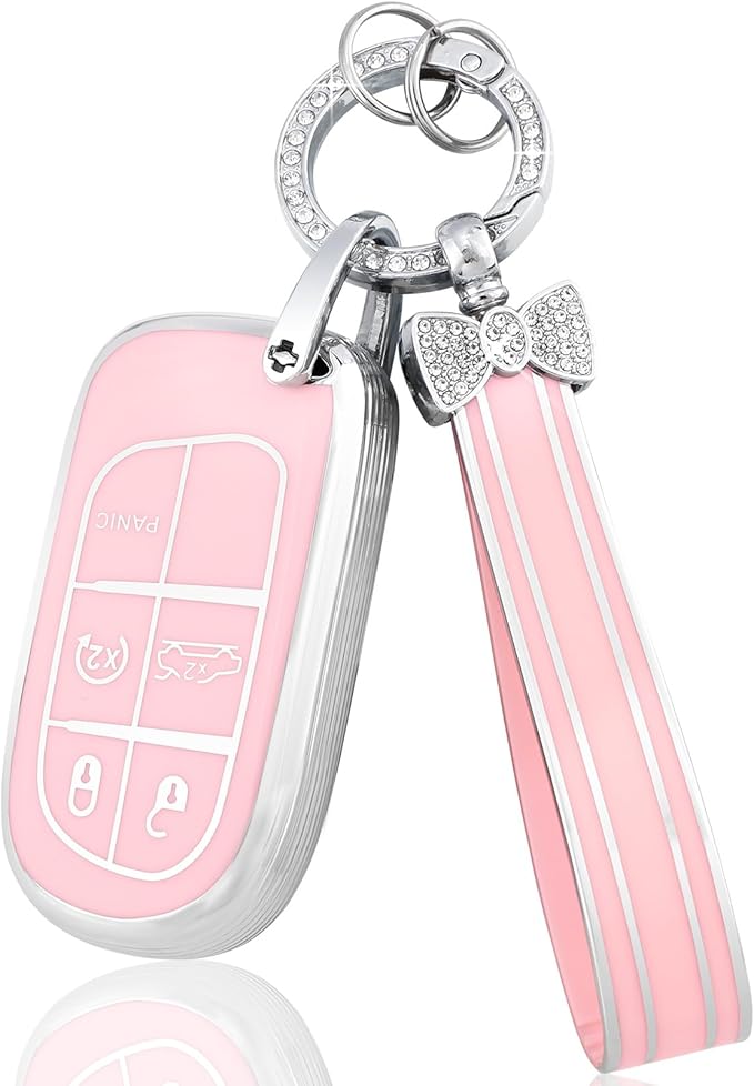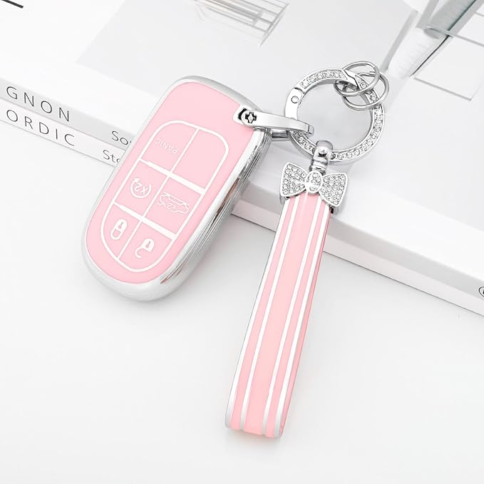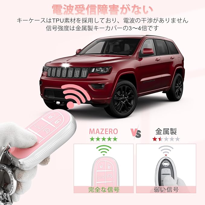 [MAZERO] ジープ キーケース キーカバー キーホルダー JEEP用 鍵 スマートキーケース ジープ チェロキー グランドチェロキー レネゲード 適用 TPU製 傷防止 高級 保護カバー 耐衝撃 工具付き 車用 アクセサリー おしゃれ ピンク ビッグシルバーエッジ | etshop