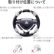 【広い用途】ユニバーサル設計で、大部分の自動車ハンドルに適用する。素材:シリコーン+ABS樹脂、カラー:ブラック、グリップ部分サイズ:直径50mm。