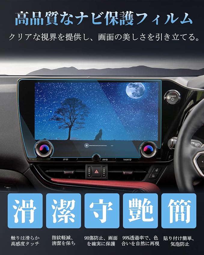 【超卓なHD映像&抜群の保護力】lexus nx 保護フィルムは、96%の高透過率を誇り、HDクリアな鮮明さと輝きをキープし、さらに反射や映り込みを軽減します。驚くほど美しい視覚効果と鮮やかなオリジナルカラーをお楽しみいただけます。9H高硬度でキズや割れから守れ、長持ちする耐久性のあるレクサス nx カーナビゲーション 保護 フィルムです。
