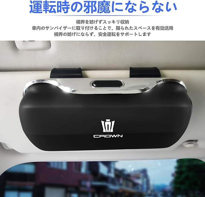[Haoshilianfa] クラウン専用 車用サングラスケース Crown用 眼鏡ホルダー メガネケース サングラスホルダー 老眼鏡ボックス カーサンバイザー用 小銭 眼鏡 駐車券 小物収納 収納ホルダー ボックス サングラス収納 車用収納 取付簡単 ブラック