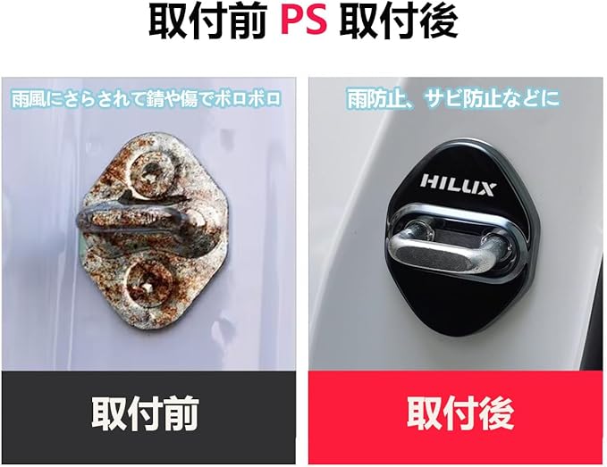 トヨタに適用 ハイラックス(HILUX) GUN125 120系(2017年9月~) に適合 ドアストライカーカバー専用 ドアロックカバー ステンレスカバー 簡単取り付け メタリック 4個セット | etshop