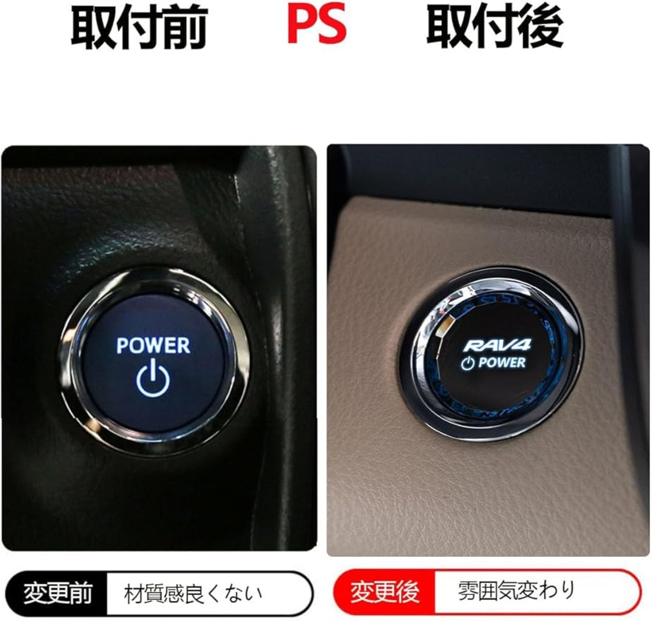 【特徴】このRAV4車に適用するスタートボタン スイッチカバーはクリスタル表面処理で文字部分はくり抜きになっているので純正のLEDはそのまま光ります。 スターターリングが非点灯時も存在感抜群!装着することでご愛車のインテリアを引き締め、高級感を演出します。さらにPOWERロゴ入りで、スタイリッシュな印象を引き立てます。