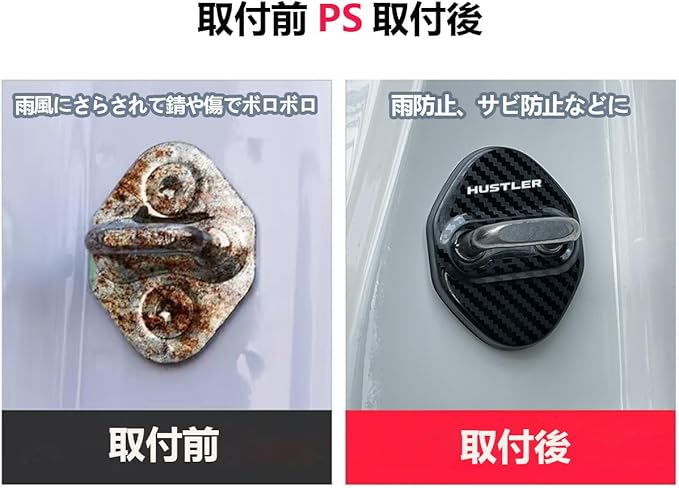 スズキに適用 新型ハスラー(HUSTLER) /MR92S MR52S MR02系(2020年1月~) MR31S MR41S に適合 ドアストライカーカバー専用 ドアロック ステンレスカバー 簡単取り付け メタリック 4個セット | etshop