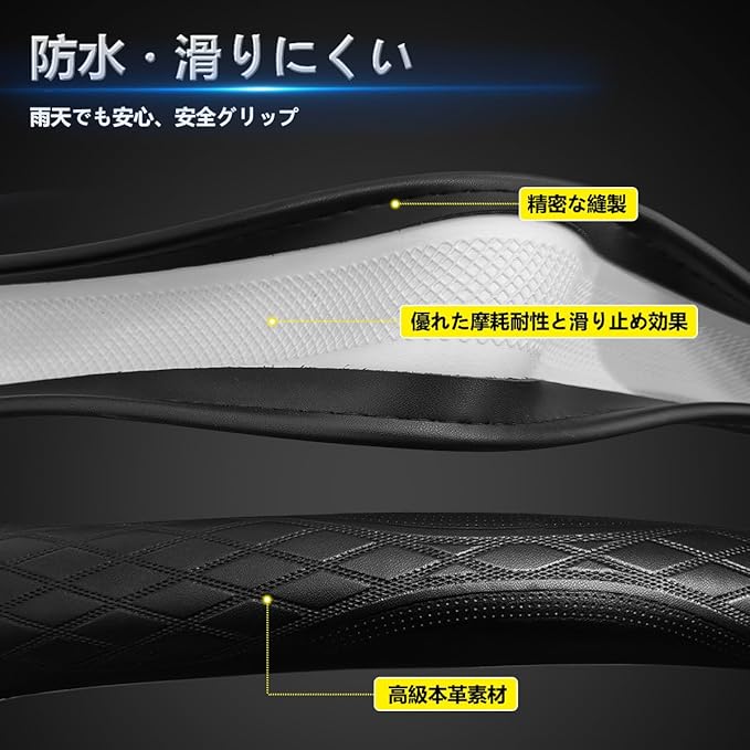 【防水・防滑加工で安心のドライブ】特殊加工により雨や汗でも滑らず、確実なグリップ力を実現。安全性と快適性を両立し、長時間ドライブでも疲れにくく、ストレスフリーの運転をサポートします。