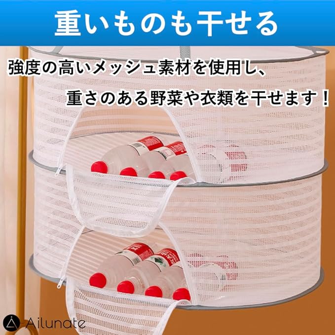 ✅【重いものも干せる】強度の高いメッシュ素材を使用し、重さのある野菜や衣類を干せます。