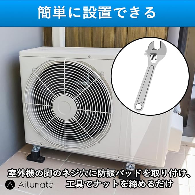 ✅【簡単に設置できる】室外機の脚のネジ穴に防振パッドを挿し込み、工具でナットを固定するだけで取り付けが完了します。特別な工具や工事は不要で簡単に設置できます。
