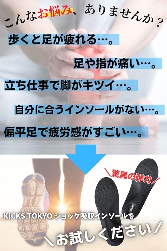 一日中快適!足裏の疲労を軽減する高弾力インソールで、どんなシーンでもサポート