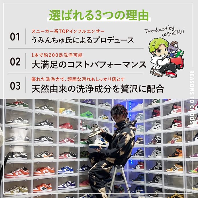 スニーカー系TOPインフルエンサーうみんちゅ氏がプロデュースするLIKE A SNEAKERS 業界でもTOPクラスのスニーカー好きが本当にいい商品だけを開発/販売するスニーカーケア限定商品です。