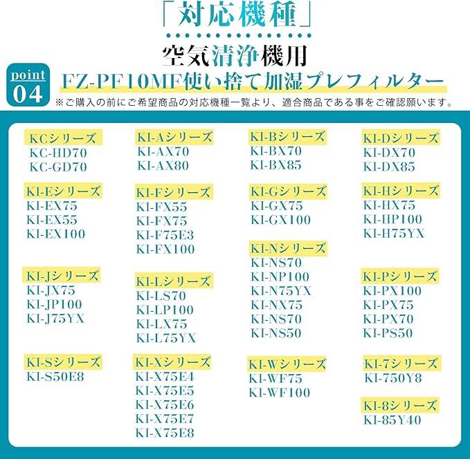 【対応機種】加湿空気清浄機専用の使い捨て加湿プレフィルター(型番:FZ-PF10MF W)。適合機種を購入前に必ずご確認ください。