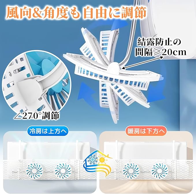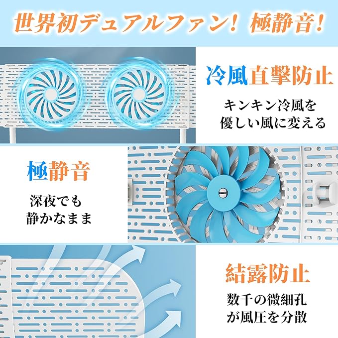 【冷風直撃防止&空気循環】2つのファン搭載の風よけカバーがエアコンの直撃風を効率よく分散。直接あたらないよう直風を防止し、冷えむらを解消。風を部屋全体に均一拡散して快適な空間を実現。