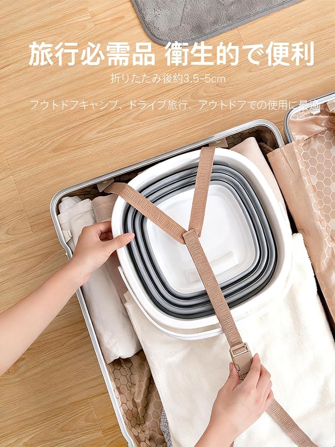 便利な折りたたみ式洗面器は、旅行やアウトドアでの使用に最適です。PP+TPR素材を使用し、耐久性と柔軟性を兼ね備えています。コンパクトに折りたためるため、収納スペースを最小限に抑えることができます。展開時は最大24cmの高さまで広がり、折りたたむと約4.5cmまでスリムになります。丸型タイプは直径33.5cm、四角型タイプは31cmと、用途に応じて選べる2つのデザインをご用意。グレーとホワイトのツートンカラーで、モダンなデザインに仕上げています。キャンプ場での食器洗いや野外での手洗い、自宅での様々な用途にも対応できる実用的なアイテムです。軽量で持ち運びやすく、使わない時は省スペースで収納できるため、アウトドアギアとしても室内用品としても重宝します。耐久性のある素材で作られているため、長期間の使用にも耐えられます。