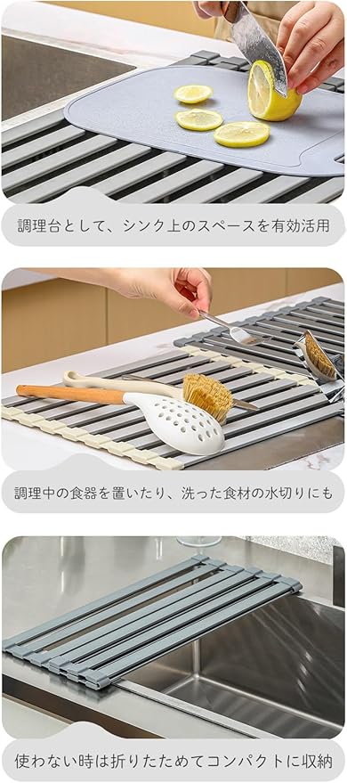 使う時はシンクに広げ、使わない時はくるくる丸めてコンパクトに収納できます。