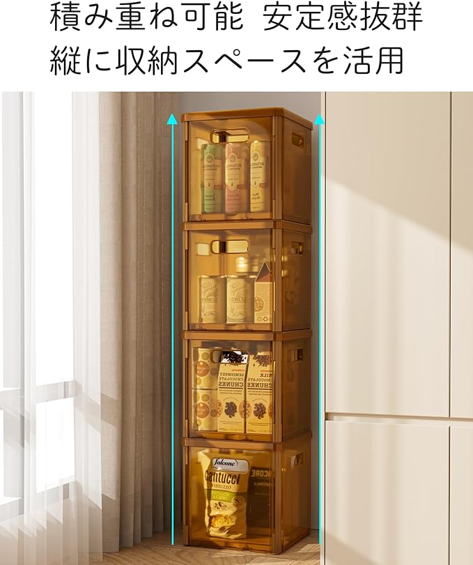 頑丈なプラスチック素材を採用し、重ね置きしても安定感抜群。縦に収納スペースを活用できるので、狭い空間でも大量収納が可能です。