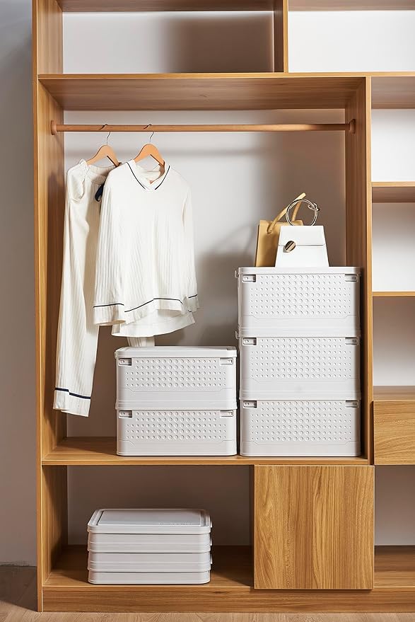積み重ね可能&多用途収納 – フタの凹み設計で複数ボックスを安定して積み重ね可能。衣類・おもちゃ・本・お菓子・日用品など幅広く整理整頓できます。