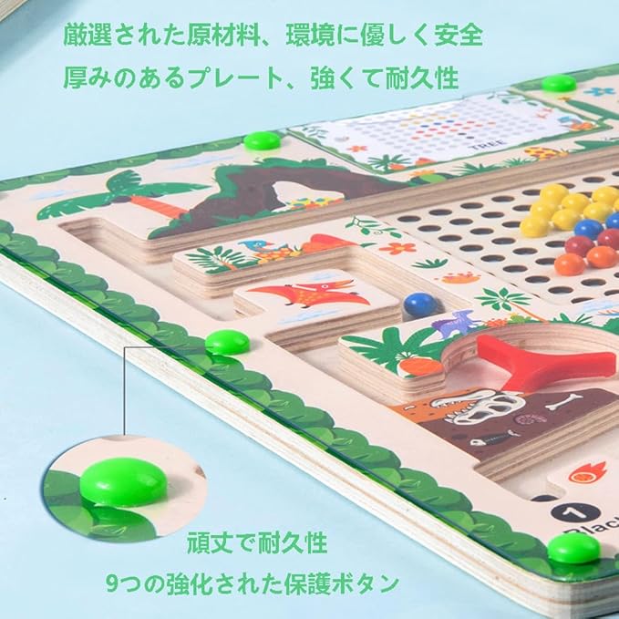 子供向け磁気迷路, モンテッソーリおもちゃのマグネットボードパズル 恐竜子供木製の磁気迷路おもちゃ 知育玩具 手目協調性能力の育成、集中力の向上、3歳以上の幼児と子供に適した理想的なおもちゃと誕生日プレゼント | etshop