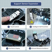 【多彩なセンサー拡張】miniHexa は、AI ビジョン、音声モジュール、超音波、タッチセンサー、マトリックスディスプレイなど幅広いセンサーに対応。カラー認識、ターゲット追跡、顔検出、音声制御、距離測定などの創造的な応用が可能です。