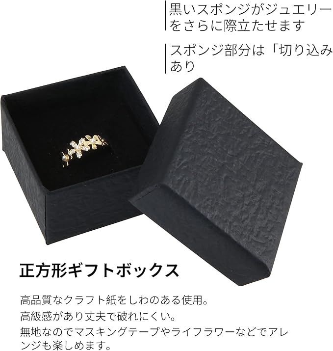 【50個セット】 指輪ケース ギフトボックス 正方形 5 5 3cm リング アクセサリー ジュエリー 収納 ラッピング 箱 無地 クラフト紙 スポンジ付き 黒 指輪 ギフト ボックス | etshop