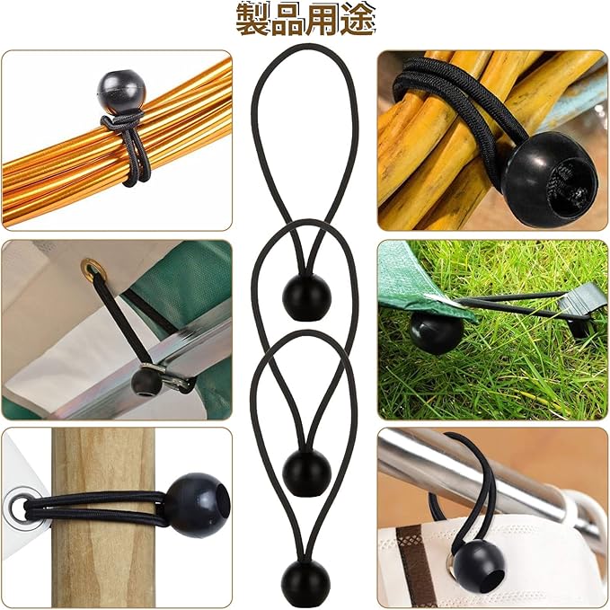 【広く使われている】これらのボールバンジーコードは、屋外でタープ、テント、日よけ、寝袋、天蓋、カーゴネット、屋外プロジェクターなどを固定するのに最適です。また、ホース、ワイヤー、コード、カーテン、タイヘアなどを保持するなどの家庭作業にも最適です。