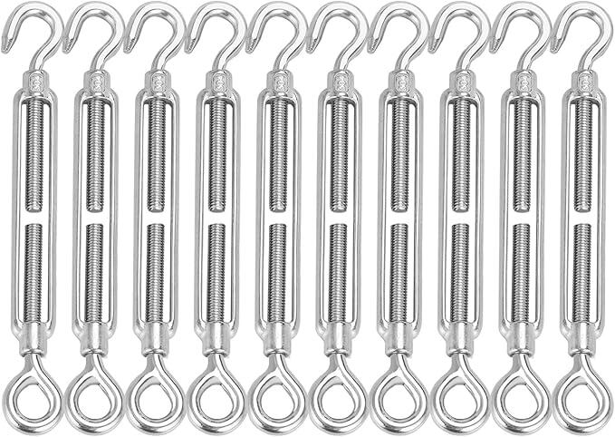 RILIHII 304ステンレス鋼の青い青いラングねじ10PCS鋼線のバックルM8ターンバックルロープ固定テント装置 ステンレス鋼ワイヤーバックル、高強度張力、強力な耐荷重性、構造補強、屋内と屋外で使用することができ、また、沿岸漁業に適しています。 色:シルバー 耐荷重:200KG サイズ:20CMx20CMx2CM(10個) 仕様:M8 注意: 純粋な手動測定に 1-2cm の誤りがあるかもしれません、事に服従して下さい
