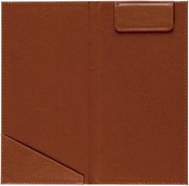 2つ折りタイプで表紙には内ポケットつき。裏表で濃淡の生地を使い分けているツートンカラーが特徴。