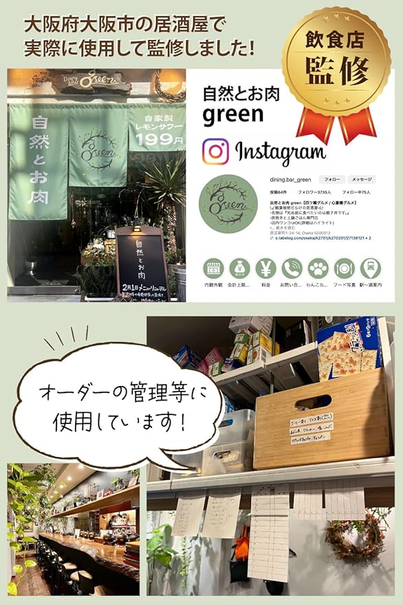 大阪府大阪市にある飲食店「自然とお肉 green」さんで監修と実際に導入いただいております。