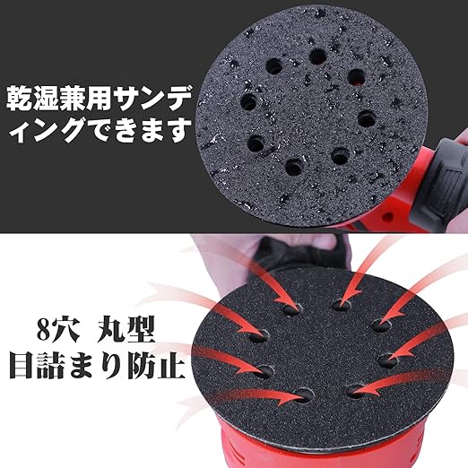 サンドペーパーのバッキングは、ベルクロのデザインを採用し、安定した吸着、剥離することは容易ではなく、すぐに作業効率を向上させるために交換することができ、8穴の設計、目詰まりすることは容易ではない