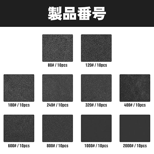 ランダムサンダー ペーパー 125mm 8穴,100 枚 サンダー ペーパー 80 120 180 240 320 400 600 800 1000 2000 各10枚,数字が小さいほど表面は粗く、大きいほど表面はきめ細かくなる